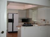 Kitchen features offset flourescent lighting and skylight.