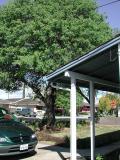 View of the oak tree from the driveway.
