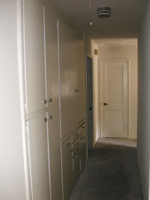 Another view of the main hallway and built-in cabinets.