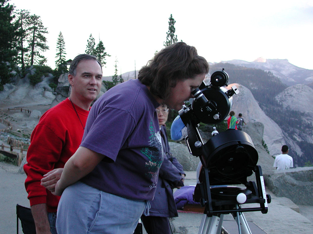 A central valley astronomer giving looks at Half Dome before sunset.
